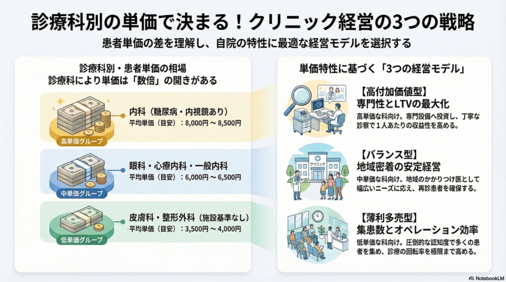 あなたの専門科目の「基準値」は?患者単価で決まる3つのクリニック経営モデル