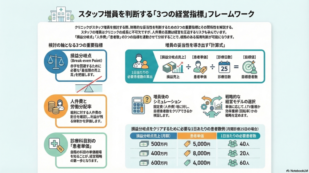 「患者数」「人件費」「損益分岐点」という3つの数字を照らし合わせることで、