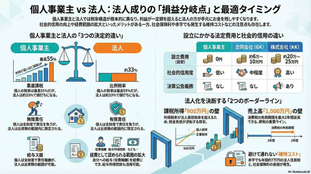 個人事業主と法人の違いは?法人成りの最適なタイミングを徹底解説