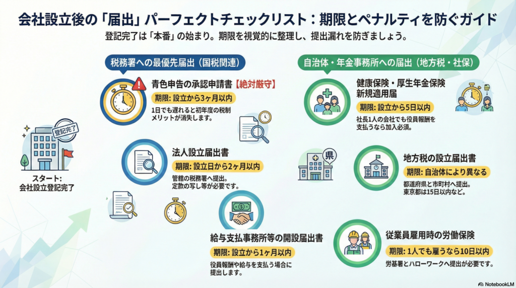 会社設立後の「届出」パーフェクトリスト|税務署・年金事務所・自治体