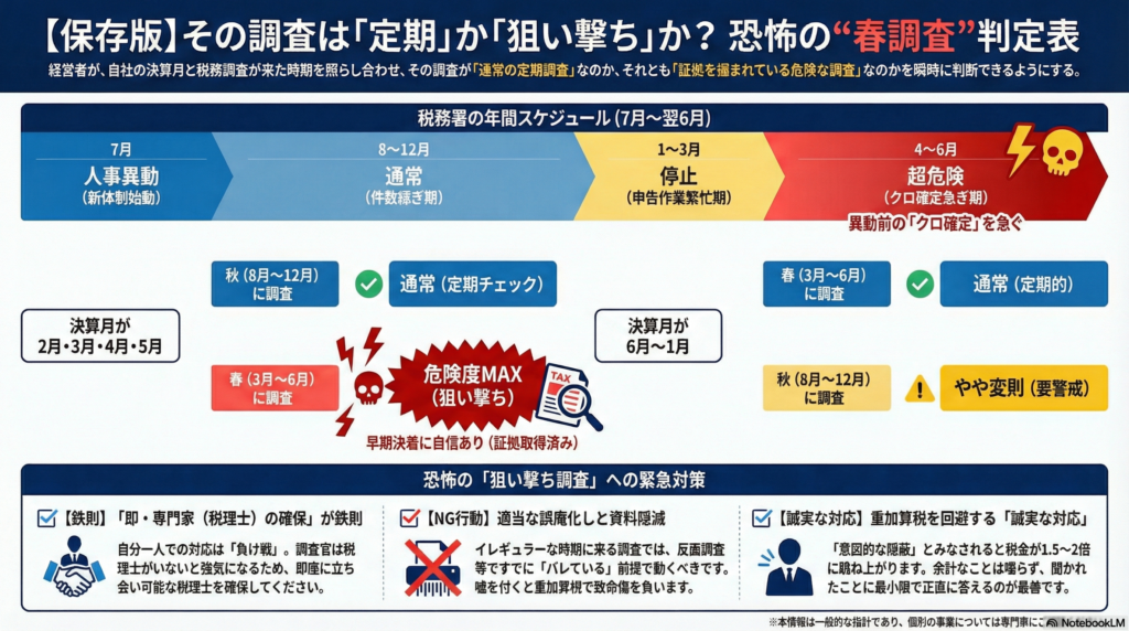 もし、あなたの会社が「2月〜5月決算」なのに、「春」に調査連絡が来た場合。