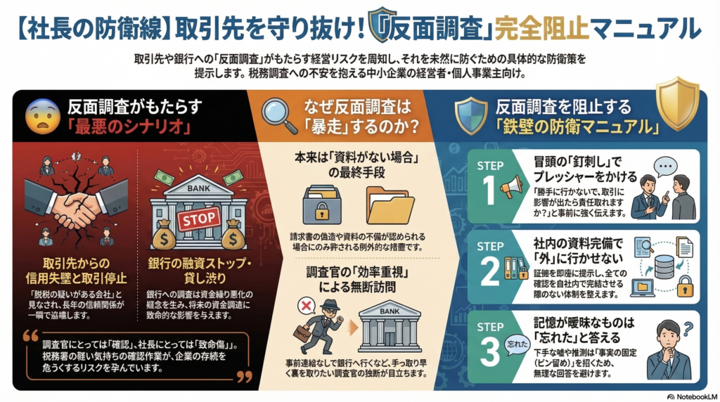 【警告】取引先を巻き込んで自爆するな!「反面調査」を阻止し、会社の信用を守る鉄壁の防衛策