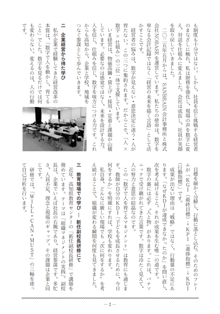 これからも高知を拠点に、経営と教育をつなぐ“参謀”として、